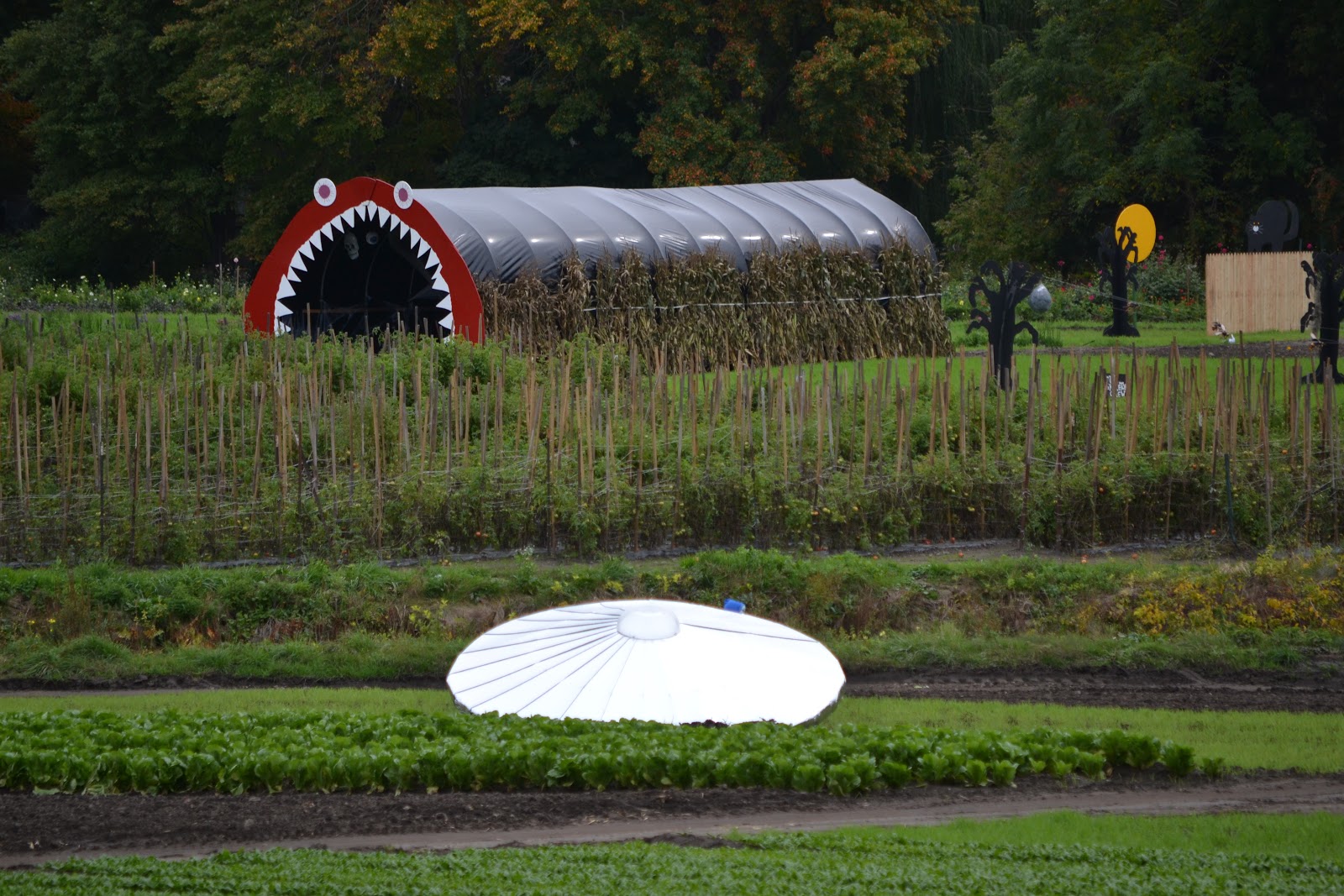 It was funny to see the haunted hayride props throughout the farm. Travis liked them a lot. :)
